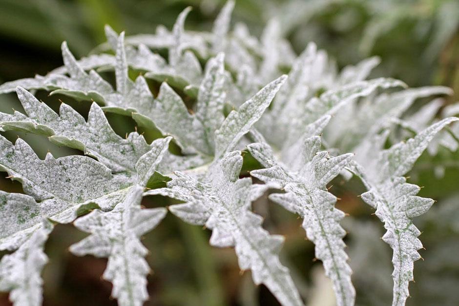 Silver Leaf Plant - Noteworthy characteristics useful as hedging and in seaside plantings.. In late summer it bears deep blue flowers. First, its foliage erupts in a mass of arching, jaggedly divided, spiny leaves up to 50cm long which are woolly with white hairs. If the leaves on your plants are turning silver, it could be due to feeding injury caused by the thrip. They can also tone down bright colors. Free shipping on orders over $25 shipped by amazon.